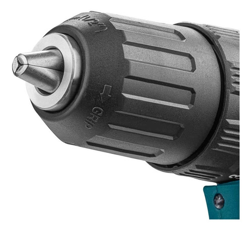 Um mandril sem chave de 13 mm mantém diferentes tamanhos de brocas o mais apertado possível para melhor desempenho. Este mandril resistente possui um sistema exclusivo para lidar com operações de perfuração, aparafusamento e perfuração com martelo. As capacidades máximas de perfuração são de 38 mm em madeira, 13 mm em concreto e 13 mm em aço.